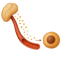 Au cours de la digestion, les glucides contenus dans les aliments sont transformés en glucose qui passe dans le sang grâce aux villosités tapissant la paroi de l’intestin grêle. La concentration moyenne de glucose dans le sang, la glycémie, varie au cours de la journée. Une valeur moyenne est maintenue, grâce à l’intervention de deux hormones antagonistes : le glucagon et l’insuline.