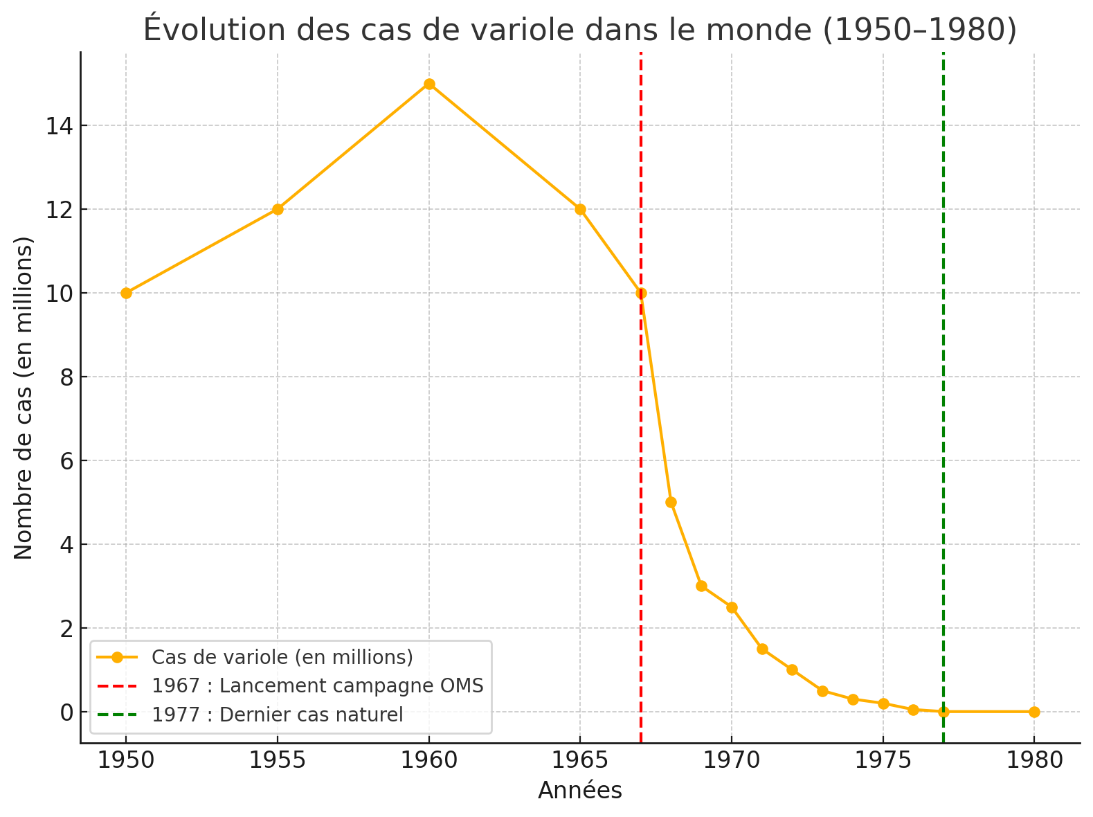 Évolution des cas de variole dans le monde de 1950 à 1980