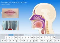 Le conduit vocal en action est une application vise à fournir une compréhension visuelle et auditive des mécanismes de la phonation. Elle permet aux utilisateurs d’observer et d’entendre comment les différentes parties du conduit vocal interagissent pour produire les sons du langage. Des coupes sagittales animées montrent en détail les mouvements des organes impliqués dans la production des sons. Chaque animation est accompagnée du son correspondant, permettant une association directe entre le mouvement anatomique et le son produit. Les utilisateurs peuvent sélectionner différentes consonnes et voyelles pour étudier leur articulation spécifique.