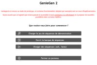 Geniegen2 est une application pédagogique principalement destinée aux élèves de lycée. Elle permet d’analyser et de comparer des séquences d’ADN, d’ARN ou de protéines, offrant ainsi un outil interactif pour l’étude de la génétique moléculaire.